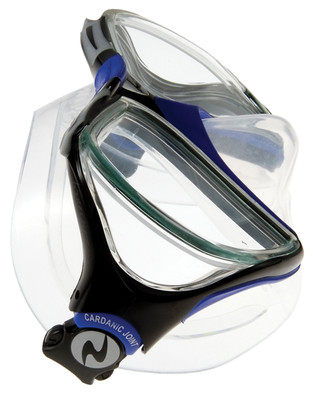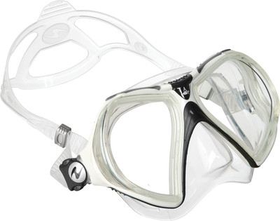 מסכת צלילה אינפיניטי. עדשות קרובות לעינים ונפח פנימי נמוך מאפשר שדה ראיה מצויין לצדדים (עדשות צד מפולימר מיוחד)ובעיקר למטה ולמעלה.